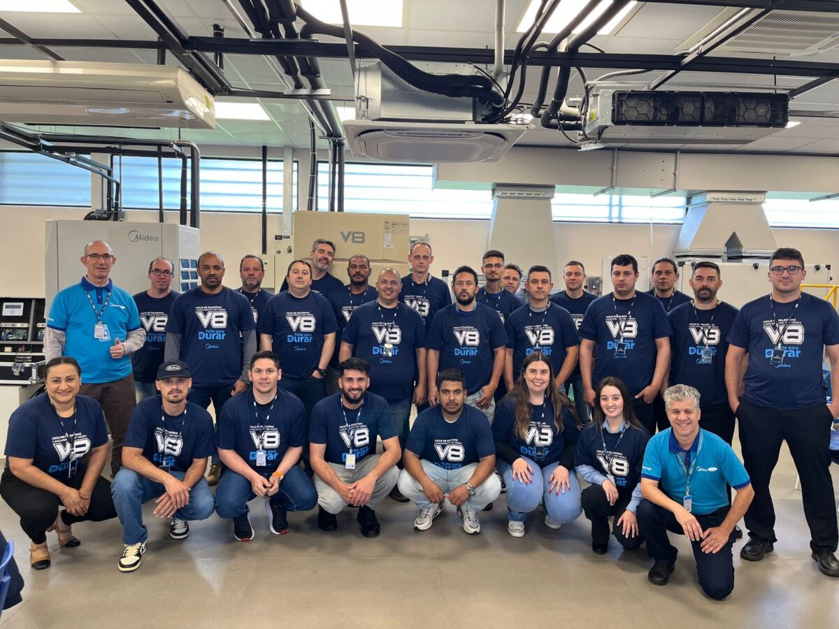 No dia 22, os profissionais visitaram a fábrica da Midea Carrier e acompanharam a obra do 4D Complex da ABF, conhecendo de perto processos industriais e etapas de execução. Nos dias 23 e 24, participaram de um treinamento técnico focado no sistema VRF V8, com aprofundamento em tecnologia, instalação e aplicações no mercado.